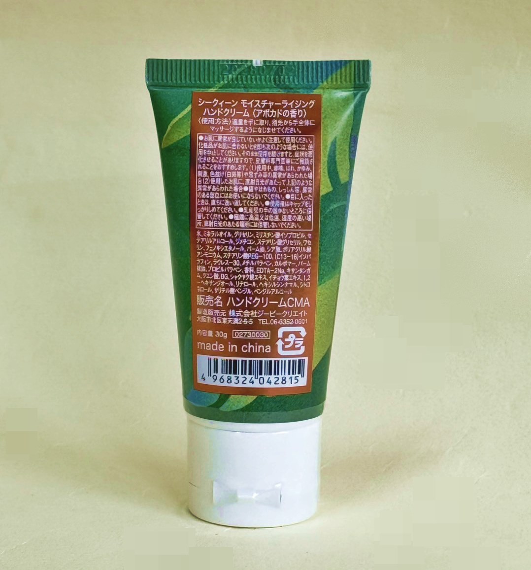 シークィーン・モイスチャーライジィング持ち運びに便利なサイズ乾燥の季節はこまめに保湿したいもの人目の多い場所でもバックからスッと出したときにの「チューブ」のデザインがオシャレ!エモリント成分のシアバターがお肌のカサつきを防ぎますアボカドのフルーティーな香りが気分を明るくします