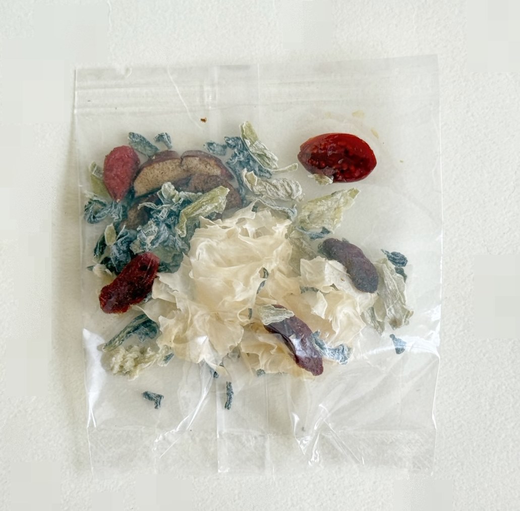 ・トッピング(乾燥):チンゲン菜・クコの実・なつめ・白きくらげ