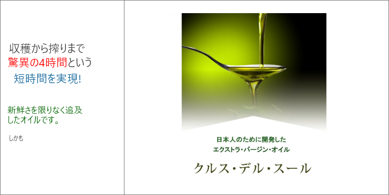フルーティーな風味でポリフェノールが豊富。 オリーブオイルの中では最も酸化しにくい。